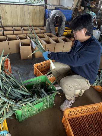 長く伸びた葉を束ねると、香りがふわりと漂う。まっすぐに伸びる姿は「誠実な営業姿勢」を象徴しているように感じた。収穫後のねぎは料理にすると香り高く、味を一層引き立てていた。